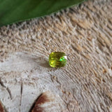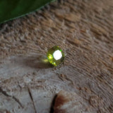 This collector's stone is a transparent yellowish-green shine with a high luster and lots of fire. Its dispersion (fire) is one of the highest of all gem materials, even higher than diamond.