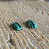 Pair of malachites crossed by a vein of blue azurite. Its electric colors are due to the presence of copper (Cu). As their hardness is not high, it is recommended to store in a separate pocket to avoid them scratch.