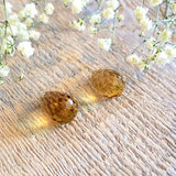 Pair of honey quartz briolettes of a golden yellow color. They are drilled above for easier mounting as a pendant or loop ears. Each pairs weigh approximately 36 ct.